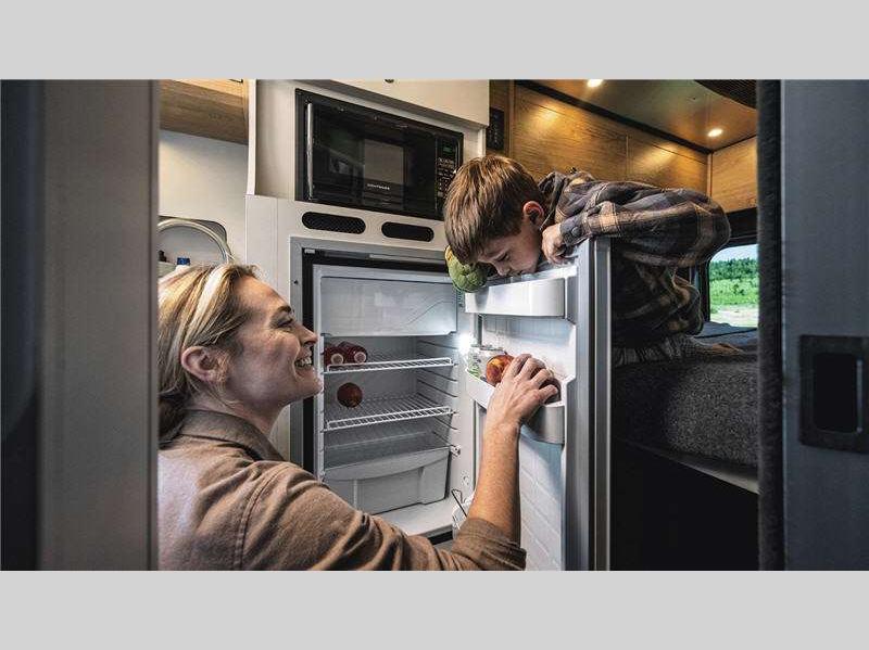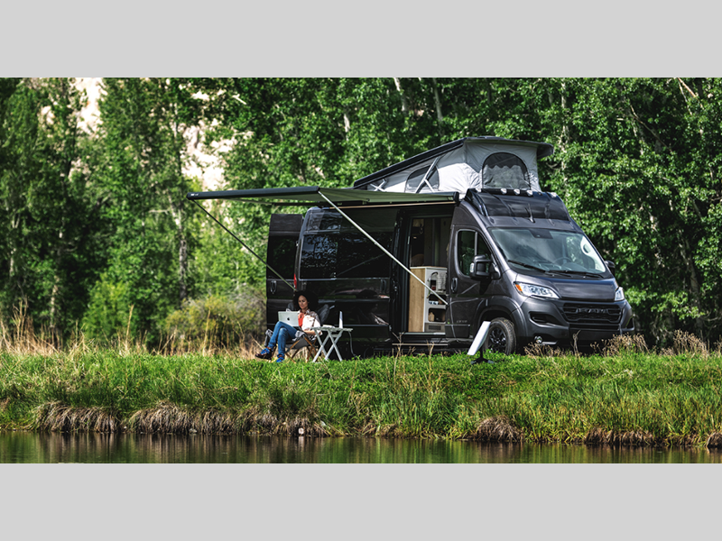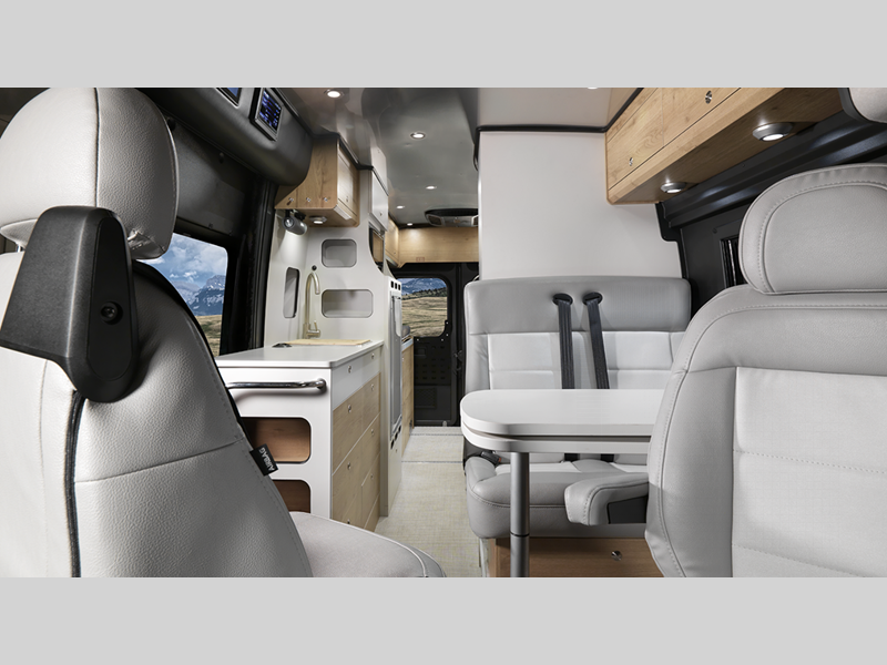 Sleeps 2 Length 20 ft 11 in Ext Width 8 ft 3 in Ext Height 9 ft 5 in Int Height 6 ft 2 in Interior Color Moonstone Grey, Admiral Navy Exterior Color Bright Silver Metallic, Granite Crystal Metallic GVWR 9350 lbs Dry Weight 7661 lbs Cargo Capacity 1689 lbs Fresh Water Capacity 28 gals Grey Water Capacity 19 gals Black Water Capacity 12 gals Generator 2.8 kW Gasoline with Remote Start Fuel Type Gasoline Engine 3.6L Pentastar V6 24V VVT Chassis RAM ProMaster 3500 Horsepower 276 hp Fuel Capacity 24 gals Wheelbase 159 in Torque 250 ft-lb Refrigerator Type 12 Volt w/ Marker Board Front Refrigerator Size 3.2 cu ft Cooktop Burners 1 Number of Awnings 1 Water Heater Type Gas Fired Hydronic AC BTU 13500 btu Awning Info 13' Manual Awning with Legs and Lighting Gross Combined Weight 12000 lbs Shower Type Wet/Bath Shower Electrical Service 30 amp